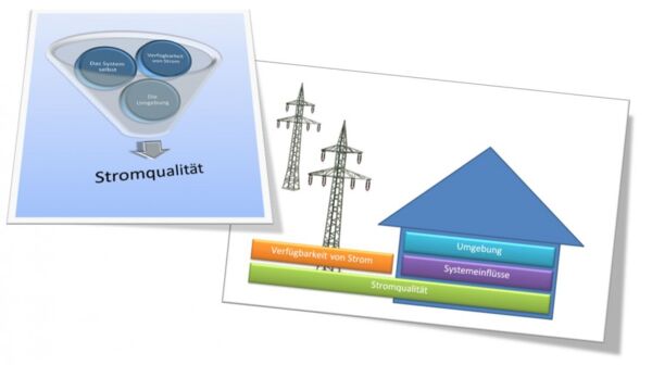 Viele sehen in der Beurteilung der Stromqualität nur die Verfügbarkeit als entscheidenden Faktor. Bei einer umfassenden Betrachtung muss jedoch die Stromqualität außerhalb sowie innerhalb der Umgebung berücksichtigt werden, ebenso wie die Umgebung selbst. Einige Störungen werden zwar von außen, z.B. der Energieversorgung oder Wetterphänomenen verursacht, der Großteil entsteht jedoch in der Umgebung selbst und beeinflusst Systeme.